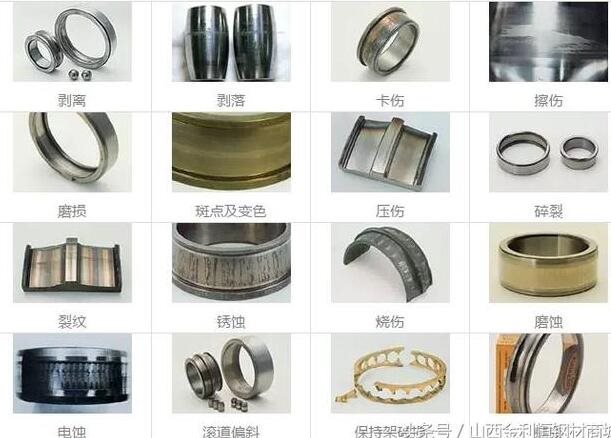 軸承損傷方式分類見下圖,根據(jù)圖片中顯示的主要特征判斷其損傷形式。軸承損傷照片及描述