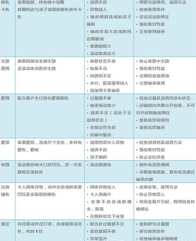 軸承損傷怎么辦?一張圖表教你解決!