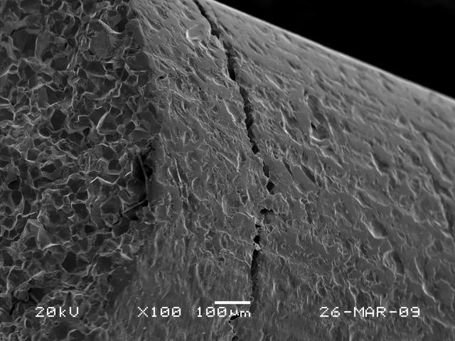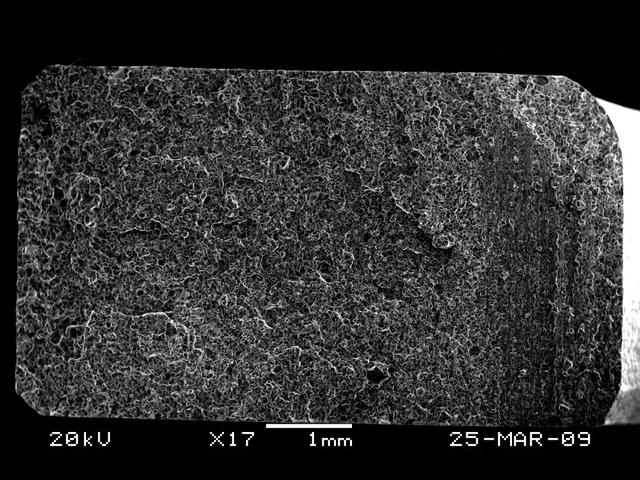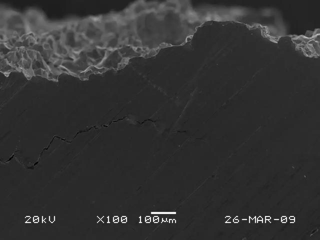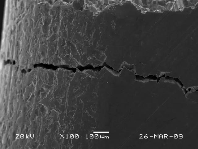 (2)任何零件的斷裂失效,都是在零件所承受的外力超過了零件的本身所具有的抗力的條件下發(fā)生的。一般情況下,斷裂源都位于零件的表面或次表面或在應(yīng)力集中處萌生,如尖角、缺口、凹槽及表面損傷處等薄弱環(huán)節(jié)。