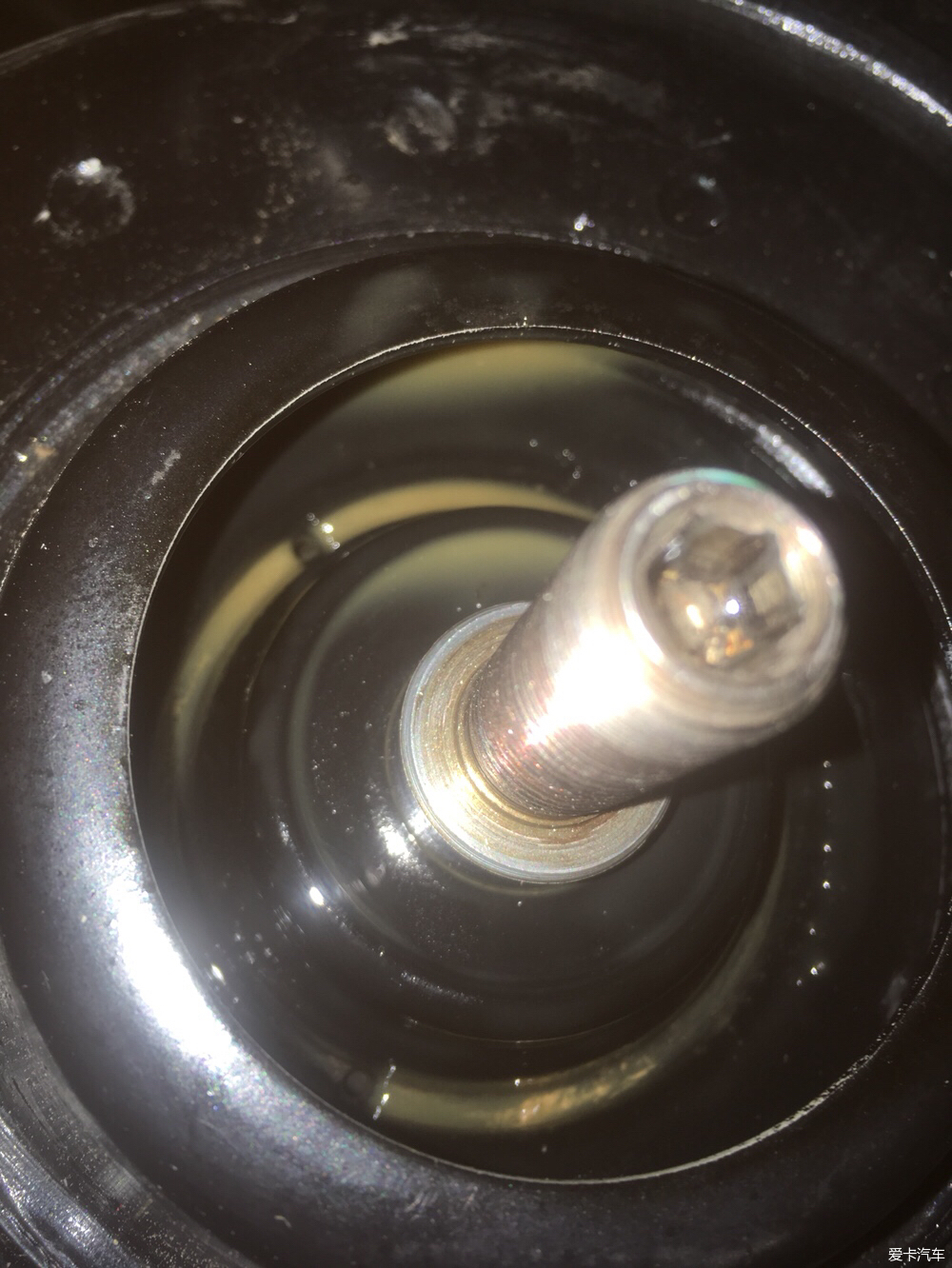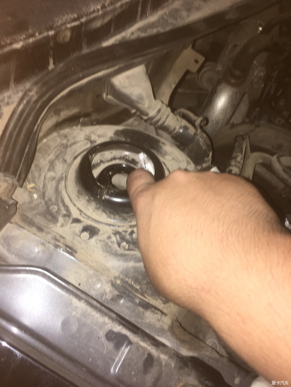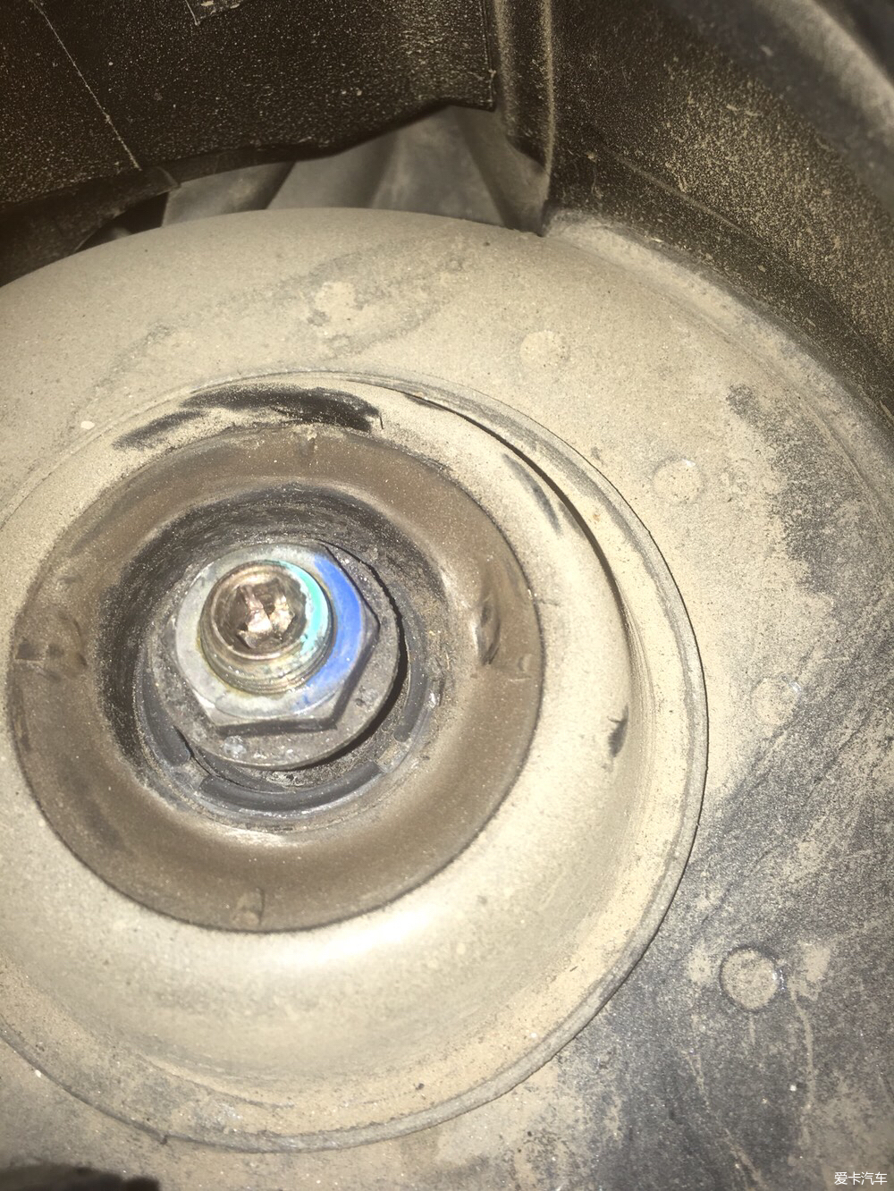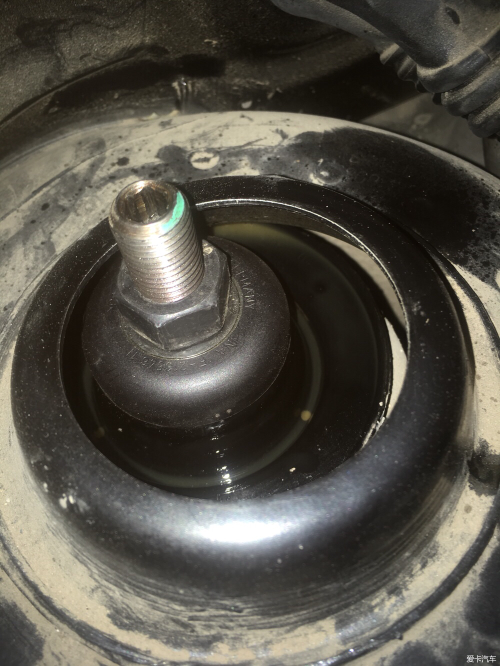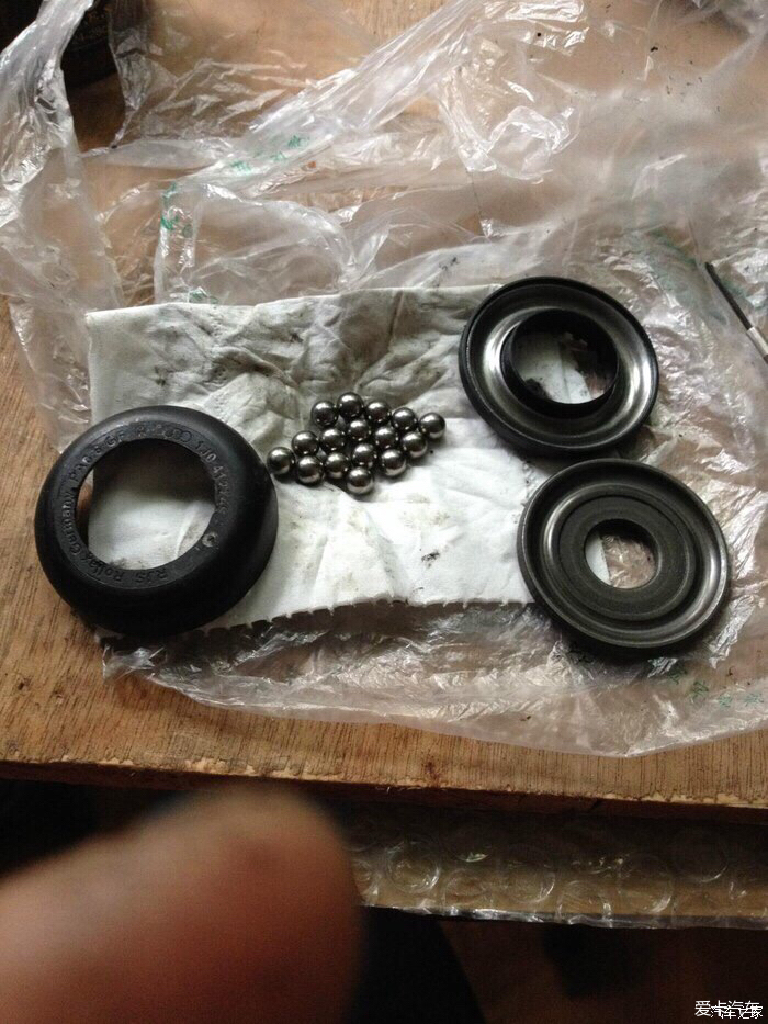 頂膠的縫隙已經(jīng)很大了,大約10mm,年初就買(mǎi)了頂膠和平面軸承,但是一直沒(méi)時(shí)間更換,由于老的頂膠已經(jīng)老化失去彈性,走起顛簸路面影響行車質(zhì)感,甚至對(duì)塔頂也有一定的傷害,昨天抽出時(shí)間更換了頂膠和平面軸承。