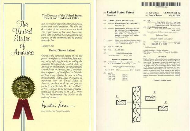 最近,西北農(nóng)林科技大學(xué)機(jī)電學(xué)院郭康權(quán)教授研究發(fā)明的“CURVED TRENCH BALL BEARING”(一種曲溝球軸承)、美國(guó)專利號(hào):US9970484 B2,在美國(guó)獲得授權(quán)。這是西北農(nóng)林科技大學(xué)首個(gè)通過(guò)國(guó)際PCT途徑在美國(guó)獲得授權(quán)的國(guó)際發(fā)明專利。