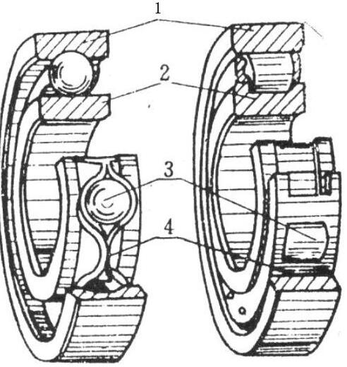 滾動體的大小和數(shù)量直接影響軸承的承載能力。在球軸承內(nèi)、外圈上都有凹槽滾道,它起著降低接觸應力和限制滾動體軸向移動的作用。保持架使?jié)L動體等距離分布并減少滾動體間的摩擦和磨損。如果沒有保持架,相鄰滾動體將直接接觸,且相對摩擦速度是表面速度的兩倍,發(fā)熱和磨損都較大。