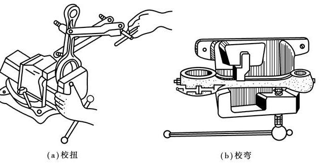 ①連桿變形的校正:當連桿彎、扭變形并存時應(yīng)先校扭后校彎。在校正連桿時,首先要記下連桿彎曲或扭曲的方向及其彎曲度和扭曲度的數(shù)值。