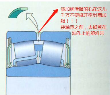 密封軸承內(nèi)注入了極壓潤(rùn)滑脂,可在70℃以下正常使用,當(dāng)軸承的轉(zhuǎn)速小于產(chǎn)品的極限轉(zhuǎn)速一半時(shí),可以不用添加潤(rùn)滑脂。當(dāng)軸承在高溫和較高轉(zhuǎn)速下使用時(shí),可以補(bǔ)充和原裝軸承內(nèi)添加的潤(rùn)滑脂性能一致的潤(rùn)滑脂。如果必須要補(bǔ)充潤(rùn)滑,在安裝軸承前必須去掉覆蓋在外圈潤(rùn)滑孔上的塑料帶,在補(bǔ)充潤(rùn)滑脂時(shí),慢慢的將潤(rùn)滑脂注入外圈的潤(rùn)滑孔內(nèi),并一邊轉(zhuǎn)動(dòng)軸承,使新的潤(rùn)滑脂能均勻分布在軸承內(nèi)。補(bǔ)充添加潤(rùn)滑脂的量只需要小量的,不要添加過(guò)多。在添加的過(guò)程中,應(yīng)避免施加過(guò)大的壓力,以防損壞密封圈。如果外圈不帶潤(rùn)滑油孔,就不能進(jìn)行再潤(rùn)滑,一定不要撬開(kāi)蓋子添加潤(rùn)滑脂了?。?!