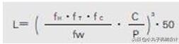 額定壽命可以根據(jù)基本動態(tài)額定負(fù)載和施加在直線軸承上的負(fù)載,按一下公式求得: