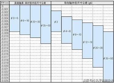 2、 直線軸承與導(dǎo)向軸(g6公差)公差范圍
