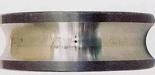 損傷狀態(tài):咬入了金屬小粉末,異物等的時(shí)候,在滾道面或轉(zhuǎn)動(dòng)面上產(chǎn)生的凹痕。由于安裝時(shí)受到?jīng)_擊,在滾動(dòng)體的間距間隔上形成了凹面(布氏硬度壓痕)。
