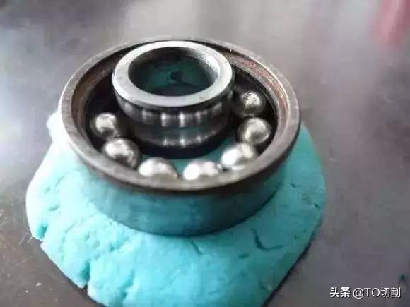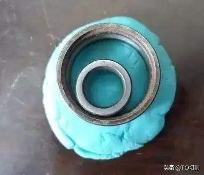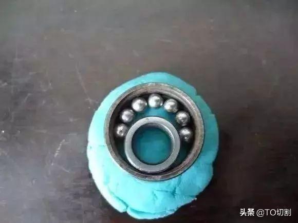 把軸承的內(nèi)外圈按圖上的方法放在橡皮泥上,稍稍按進(jìn)去點(diǎn)。