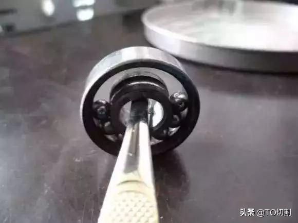 用鑷子穿過(guò)內(nèi)圈,同時(shí)向著鋼珠的方向用力頂住鋼珠。