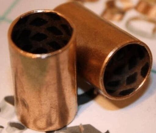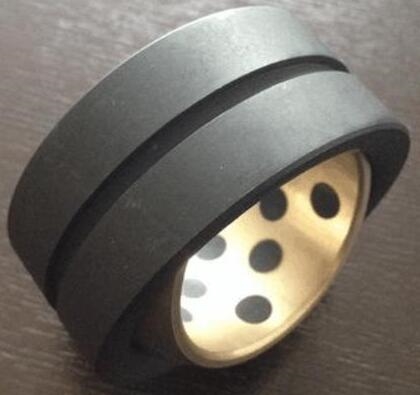 銅合金卷制鑲嵌型自潤滑軸承也是屬于卷制型滑動軸承,固潤軸承采用特殊配方的高密度銅合金帶材為基體,表面埋入固體潤滑劑經(jīng)卷制整形等多道工序制作而成。由于以延伸率較高的銅合金材料作為基體,所以可以制成特薄的卷制軸套,再加上理想的填充材料為潤滑劑。