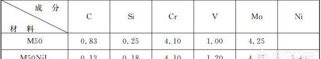 圖、M50和M50NiL成分一覽圖