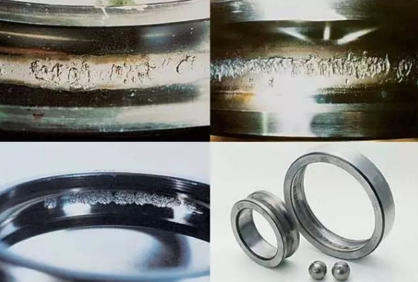 滾動(dòng)軸承的生銹和腐蝕會(huì)造成套圈、滾動(dòng)體表面的坑狀銹、梨皮狀銹及滾動(dòng)體間隔相同的坑狀銹、全面生銹及腐蝕。最終引起滾動(dòng)軸承的失效。