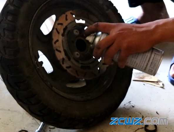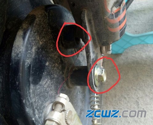 6、再就是把車輪和剎車盤先上好,在用螺桿固定,另外剎車盤有個(gè)卡槽要卡好。