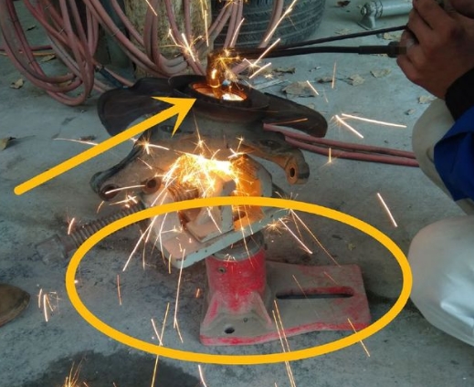 汽車維修再難也難不住汽修師傅,因為汽修師傅能折騰!下圖所示,為了拆掉軸頭上的軸承內(nèi)圓,汽修師傅用上了電焊切割機!