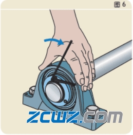 5、按步驟3和4將第二個(gè)軸承單元定位到軸上。對(duì)于立式軸承座單元,使用軸仔細(xì)對(duì)中兩個(gè)單元,然后在軸承座底座上完全擰緊安裝螺栓。對(duì)于法蘭軸承單元,在可行的情況下使用軸承座背部的定心凹槽,將之緊固到機(jī)構(gòu)的配合面上。
