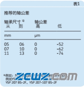 1、使用砂布或細(xì)銼來(lái)清除軸上的所有毛刺,用布擦凈,并檢查軸直徑(圖1)。有關(guān)推薦的軸公差,請(qǐng)參見(jiàn)表1。