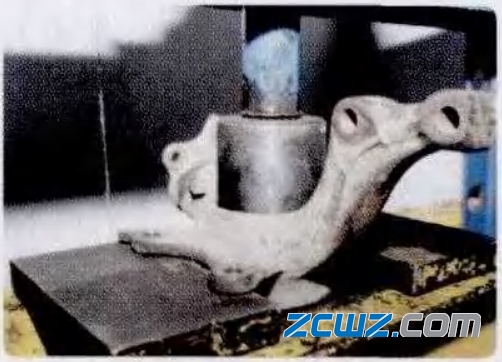 (5)使用壓力機(jī)及尺寸恰當(dāng)?shù)膱A形墊塊,將舊的輪轂軸承從轉(zhuǎn)向節(jié)中壓出(如圖8所示)。
