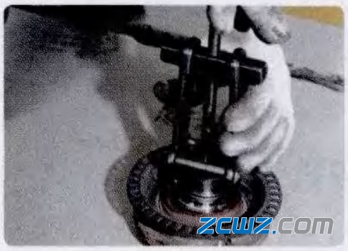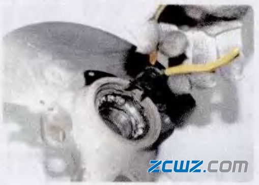 (2)在安裝新的輪H軸承前,應(yīng)先清潔轉(zhuǎn)向節(jié)上的軸承座孔。安裝前可以先使用錘子輕輕將軸承敲入軸承座一些,以便于定位。