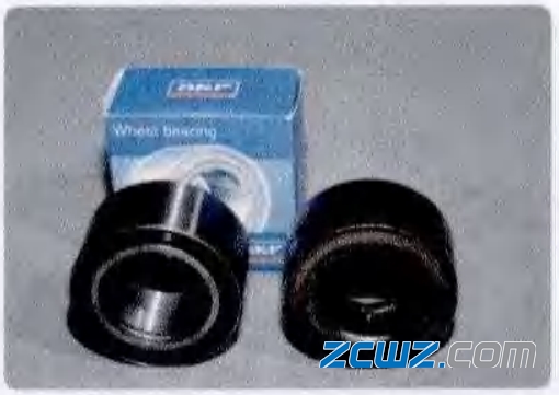 (1)安裝新的輪轂軸承時(shí),如沒(méi)有專用工具,可使用剛剛拆下的廢舊軸承。注意:將軸承壓入轉(zhuǎn)向節(jié)時(shí),一定不能使軸承內(nèi)圈受力,否則將損壞軸承;而將輪轂壓入軸承時(shí),要保證軸承內(nèi)圈均勻受力。