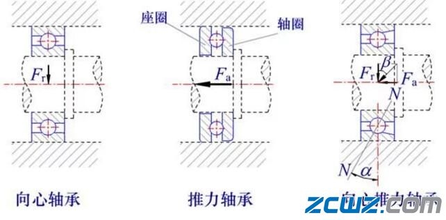 2按可承受的外載荷分類:向心軸承、推力軸承、向心推力軸承。在選擇滾動(dòng)軸承時(shí)需要考慮受力方向。下圖中:夾角α叫作軸承的接觸角,夾角β叫作載荷角。機(jī)械設(shè)備中的各種滾動(dòng)軸承,漲姿勢(shì)!