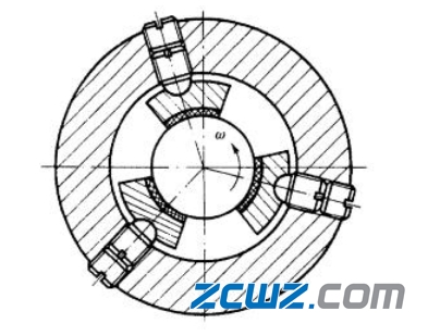 (b)為固定式三油楔軸承,工作時,可形成三個動壓油膜,提高了旋轉(zhuǎn)精度和穩(wěn)定性。固定式三油楔軸承只允許軸頸沿一個固定的方向回轉(zhuǎn)。