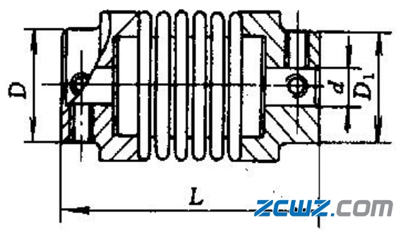 波紋管聯(lián)軸器由兩個(gè)軸套和波紋管組成。