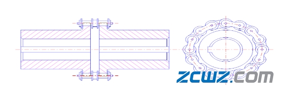 利用一條公用的雙排鏈條同時(shí)與兩個(gè)齒數(shù)相同的并列鏈輪嚙合來實(shí)現(xiàn)兩個(gè)半聯(lián)軸器的連接。