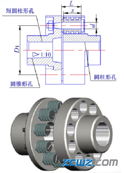 半聯(lián)軸器的材料常用HT200,有時(shí)也采用35鋼或ZG270-500;柱銷材料多用35鋼;彈性套材料常用耐油橡膠。半聯(lián)軸器與軸配合的孔可做成圓柱形或圓錐形。