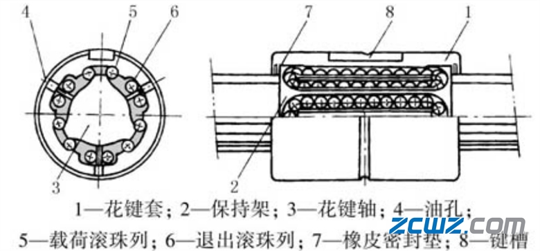 導(dǎo)軌與導(dǎo)套呈圓柱形,造價(jià)低,但滾動(dòng)體與軸呈點(diǎn)接觸,承載能力較小,適用于精度要求較高、載荷較輕的場(chǎng)合。