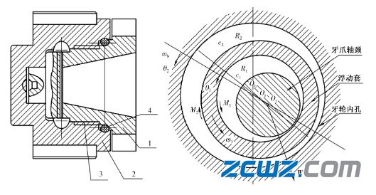 1—牙爪(軸承內(nèi)副);2—牙輪(軸承外副);3—浮動套;4—密封圈