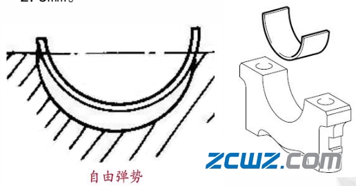 軸瓦在自由狀態(tài)下的曲率半徑略大于座孔半徑,其直徑之差稱為自由彈勢或張開量。汽油機一般為0.8 ~1. 5mm,柴油機為1.5~2.5mm。