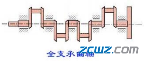 在相鄰的兩個曲拐之間都設(shè)置一個主軸頸的曲軸,稱為全支承曲軸,否則稱為非全支承曲軸。