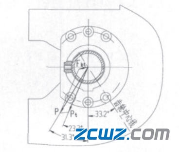 對比觀察柴油機兩次燒壞的軸承套發(fā)現(xiàn),軸承套內孔表面燒傷嚴重部位都位于方位相同的布油槽(每個軸承套2條布油槽)的同一側表面(見圖3),且軸承套安裝到軸承座后的該布油槽的方位也基本相同(見圖4)。由此得到啟示,是否是布油槽的位置不合理,在軸承套受力方向不能形成油膜所致?于是從軸承套受力和油膜形成角度進行分析和排查。