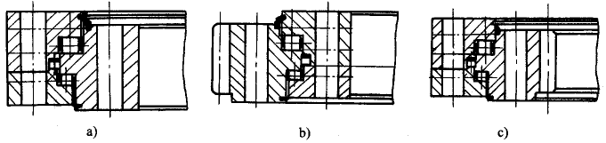 | 圖3 三排滾柱式回轉(zhuǎn)支承 a)無齒式 b)外齒式 c)內(nèi)齒式 |