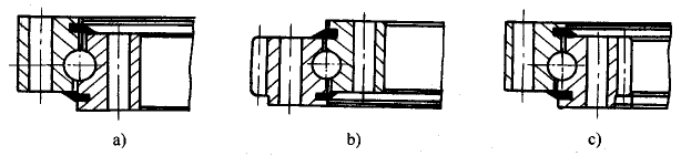 | 圖1 單排四點(diǎn)接觸球式回轉(zhuǎn)支承 a)無齒式 b)外齒式 c)內(nèi)齒式 |