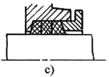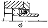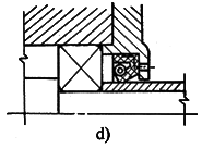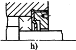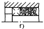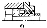 非接觸式密封序號密封型式簡 圖說 明1間 隙 式縫隙式間隙軸與端蓋配合面之間,間隙越小,軸向?qū)挾仍介L,密封效果越好。一般徑向間隙取0.1~0.3mm。適用于環(huán)境比較干凈的脂潤滑條件2溝槽式間隙在端蓋配合面上開有溝槽。充填潤滑脂以提高密封效果3“W”形間隙用于油潤滑。在軸或套上開有“W”形槽,借以甩回滲漏出來的潤滑油。端蓋孔內(nèi)也開有回油槽,將甩到孔壁上的油回收入軸承或箱內(nèi)4迷 宮 式徑向迷宮徑向迷宮曲路是由套和端蓋的徑向間隙構(gòu)成迷宮曲路沿軸向展開,故徑向尺寸緊湊。曲路折回次數(shù)越多,密封越可靠。適用于較臟的工作環(huán)境5軸向迷宮軸向迷宮曲路由套和端蓋間的軸向間隙構(gòu)成。迷宮曲路沿徑向展開,曲路折回次數(shù)不宜過多。由于裝拆方便,端蓋不須剖分,應(yīng)用較徑向迷宮廣泛6組合式迷宮組合式迷宮曲路是由兩組“T”形墊圈構(gòu)成。占用空間小,成本低,適于成批生產(chǎn)。此類墊圈成組安裝,數(shù)量越多,密封效果越好7墊 圈 式旋轉(zhuǎn)墊圈工作時(shí),墊圈與軸一起轉(zhuǎn)動,軸的轉(zhuǎn)速越高,密封效果越好。旋轉(zhuǎn)墊圈既可用來阻擋油的泄出,也可阻擋雜物的侵入,視墊圈所在位置而定8靜止墊圈固定在軸承外圈上的墊圈工作時(shí)靜止不動。主要用來阻擋外界灰塵、雜物的侵入接觸式密封序號密封型式簡 圖說 明1毛 氈 密 封單氈圈式主要用于脂潤滑,用于對干凈環(huán)境下工作的軸承進(jìn)行密封。一般接觸處的圓周速度不超過4~5m/s,允許工作溫度可達(dá)90℃。如果表面經(jīng)過拋光,毛氈質(zhì)量較好,圓周速度可達(dá)7~8m/s氈圈與軸之間的摩擦較大,長期使用易把軸磨出溝槽。一般多采用軸套與毛氈圈接觸的結(jié)構(gòu)2雙氈圈式3多氈圈式4橡 膠 密 封密封唇向里密封圈用耐油橡膠制成,用于脂潤滑或油潤滑的軸承密封。接觸處的圓周速度不超過7m/s,溫度不高于100℃為了保持密封圈的壓力,密封圈用彈簧圈緊箍在軸上,使密封唇呈銳角狀。圖d的密封唇面向軸承,用于防止?jié)櫥偷男钩觯瑘De的密封唇背向軸承,用于防止灰塵雜物的侵入5密封唇向外6雙密封圈
