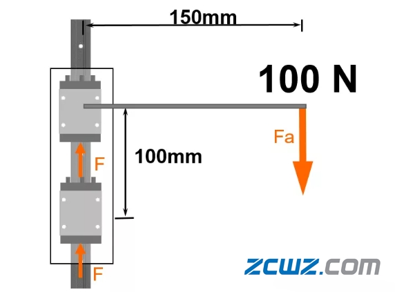 我們可以知道作用在導(dǎo)軌上的力應(yīng)該是f=(100x150)/100=150N