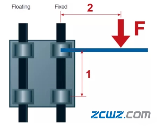 2:1法則指的是驅(qū)動(dòng)力的作用點(diǎn)到固定軸承端的距離不能超過(guò)固定軸承長(zhǎng)度/間距的2倍。