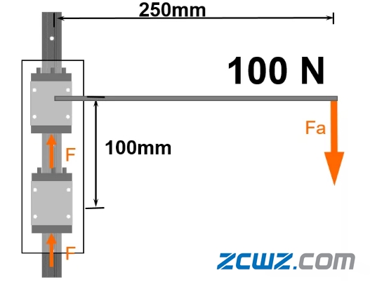 我們可以知道作用在導(dǎo)軌上的力應(yīng)該是f=(100x250)/100=250N