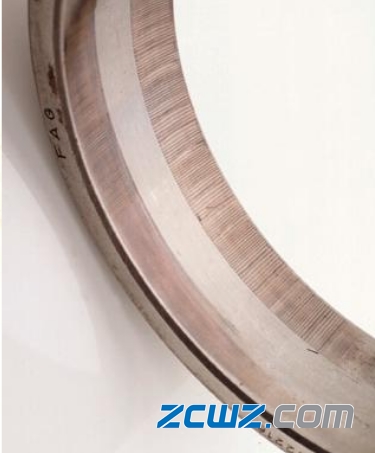 癥狀:滾道底部滾動(dòng)體的嚴(yán)重磨損痕跡。