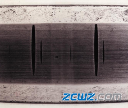 定狀:在非轉(zhuǎn)動(dòng)套圈的滾道上形成的,與滾道邊緣不平等的磨損痕跡。