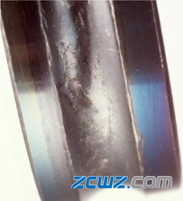 癥狀:覆蓋滾道絕大部分或整個(gè)滾道圓周的軸向平行的棕色痕記。
