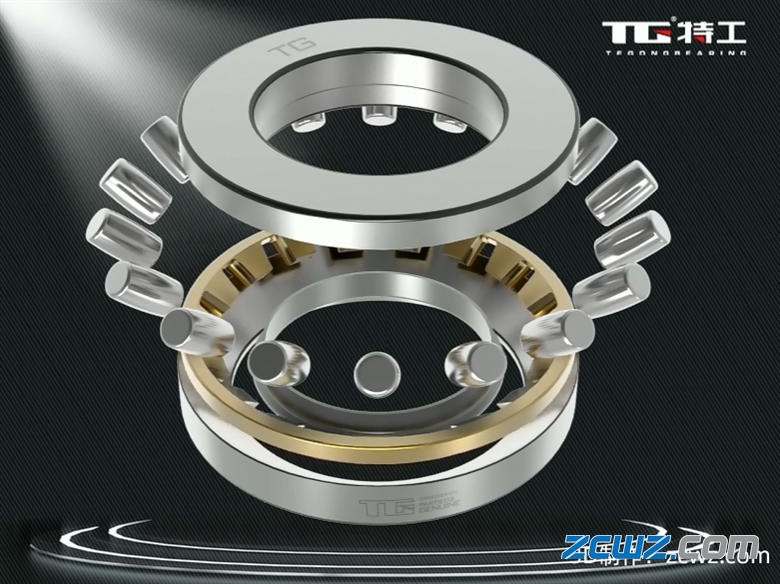 TVPB——玻璃纖維增強(qiáng)聚酰胺實(shí)體保持架,內(nèi)圈引導(dǎo)(推力滾子軸承為軸引導(dǎo))。