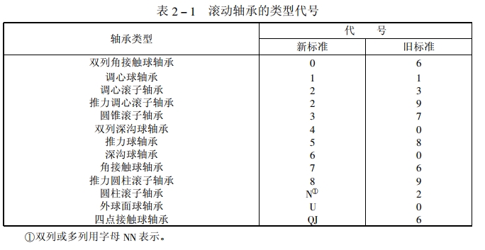 軸承類型代號用數(shù)字或字母按表2-1表示。