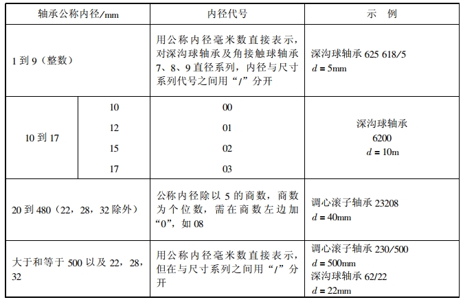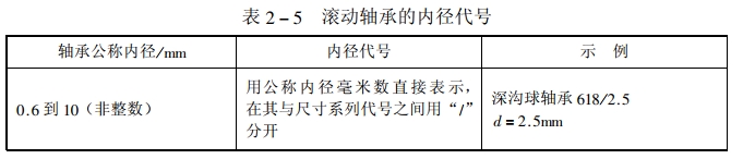 表示軸承公稱內(nèi)徑的內(nèi)徑代號見表2-5。
