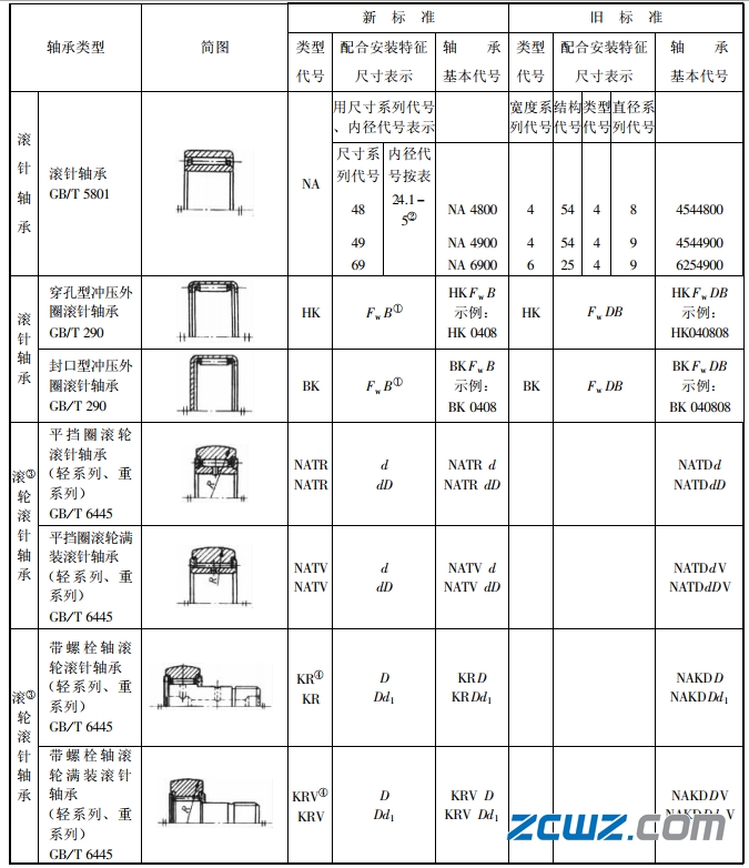 ③滾輪滾針軸承代號摘自JB/T 2974—1993.