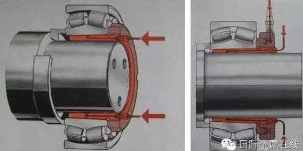 用壓力機(jī)**最為簡單。此時(shí),要注意讓內(nèi)圈承受其拔力。大型軸承的內(nèi)圈拆卸采用油壓法。通過設(shè)置在軸上 的油孔加以油壓,以使易于拉拔。寬度大的軸承則油壓法與拉拔卡具并用,才能拆卸。NU 型、NJ 型圓柱滾子軸承的內(nèi)圈拆卸可以利用感應(yīng)加熱法。在短時(shí)間內(nèi)加熱局部,使內(nèi)圈膨脹后再拉拔的方法。