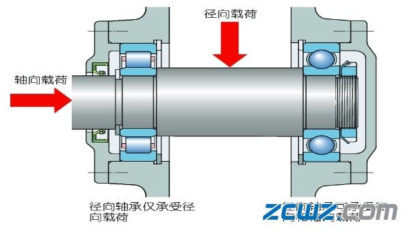 通常情況下軸承是承受徑向載荷的,也就是與軸承外圈表面垂直的方向,比方說0類深溝球軸承、多數(shù)2類圓柱軸承,多數(shù)應(yīng)用于電機(jī)、農(nóng)業(yè)機(jī)械等行業(yè);軸承承受軸向載荷(也就是平行于軸方向的載荷)的多數(shù)為平面止推軸承,汽車方向盤、船用等齒輪箱里面的止推軸承都是,也有成對使用的圓錐滾子軸承,不過圓錐滾子軸承是既可以承受軸向載荷又可以承受徑向載荷的,這樣的軸承還有角接觸球軸承,根據(jù)接觸角的大小來區(qū)別承受軸向載荷的大小。