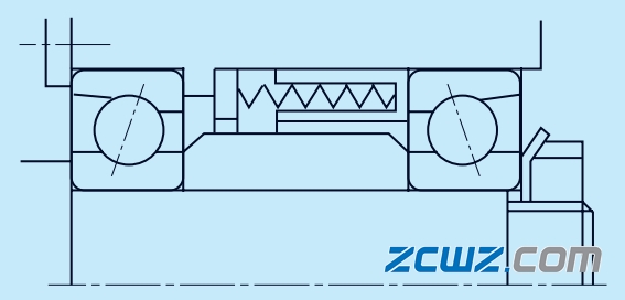 定壓預緊是一種利用螺旋彈簧、碟形彈簧等對軸承施加預緊的方法。在使用中即使軸承相對位置發(fā)生變化,預緊力也可大致保持不變(見圖2)。