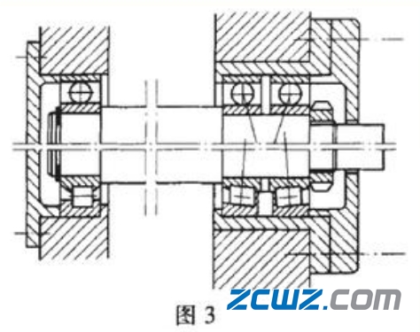(1)當軸向力不大時,可選用圖1所示的向心球軸承支承。